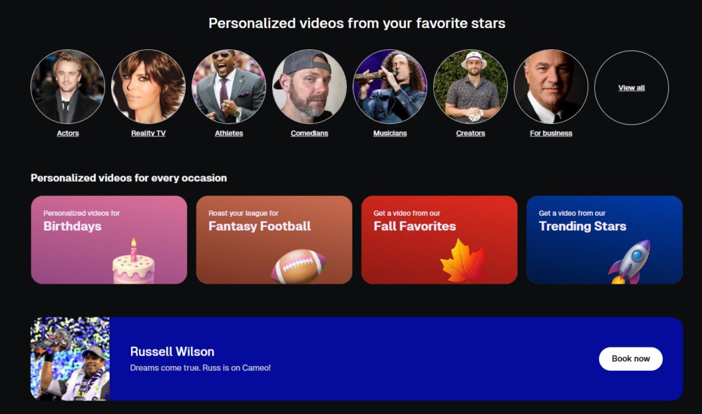 Rejoice with Cameo — With a fast turnaround & no delivery required, Cameo provides a contemporary tackle gift-giving. Create unforgettable fan moments with private movies that commemorate, uplift, and shock.